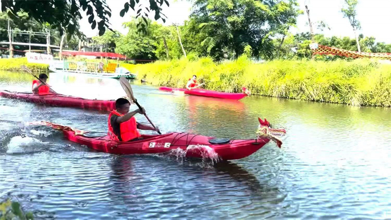 6月22日上午,??谑行阌^長流鎮新時代文明實踐所在轄區舉辦2023年端午龍舟美食節活動。