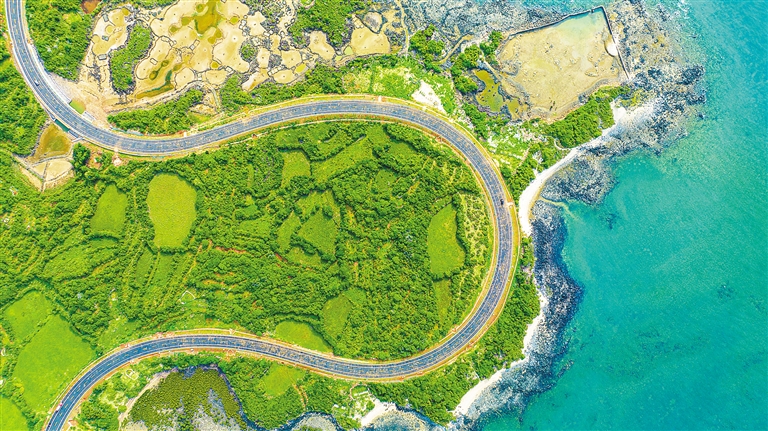 六月二十六日,俯瞰海南環島旅游公路儋州段。海南日報記者 袁琛 攝