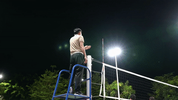 更有趣的是,還有人手牽手打排球,有人用凳子玩排球。