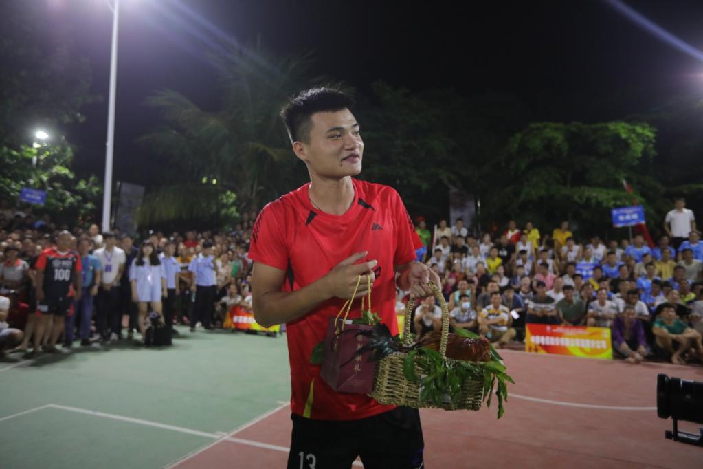 首個比賽日結束,獲得最有價值球員(MVP)的是一位剛參加完高考的學生,頒發的獎品,竟是一只活蹦亂跳的儋州本地土雞,接地氣的獎品引來觀眾和隊友的一片喝彩。