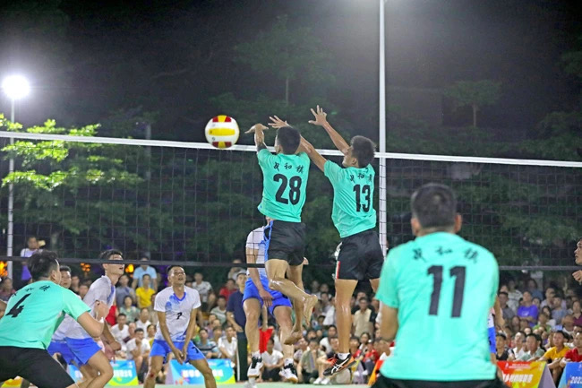 東道主中和鎮隊的拉拉隊聲勢浩大,觀眾擂鼓搖旗吶喊,為即將上場的運動員助威。許圣韓是中和鎮排球隊的一員,他說:“我們鄉下一直有打排球的傳統,大家在打球中感受樂趣,認識球友、交流球技,我有信心贏得今晚的比賽?!?/p>