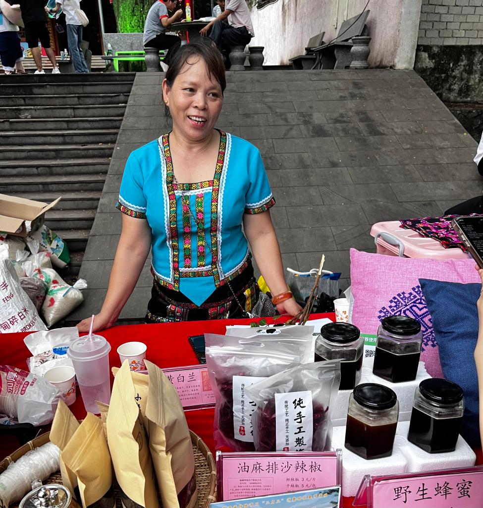 7月3日,黃白蘭在七里村擺攤出售農特產品。新華社記者 陳子薇 攝