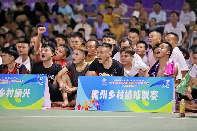 7月3日,2023年儋州市東坡玉蕊鄉村排球聯賽在七里村開賽,不到晚上七點半,村里的排球場已是座無虛席,人聲鼎沸。因座位有限,不少觀眾席地而坐,上有耄耋之年的老人,下有還未上學的孩童,大家神情專注,關注著場上激烈的比賽。
