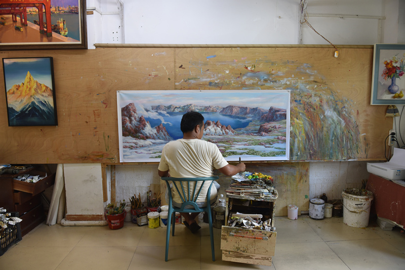 “我們這里最年輕的一批畫師,都在30歲左右?!?月25日,海南省屯昌縣油畫產業協會會長陳益君在油畫街接受采訪時說道。