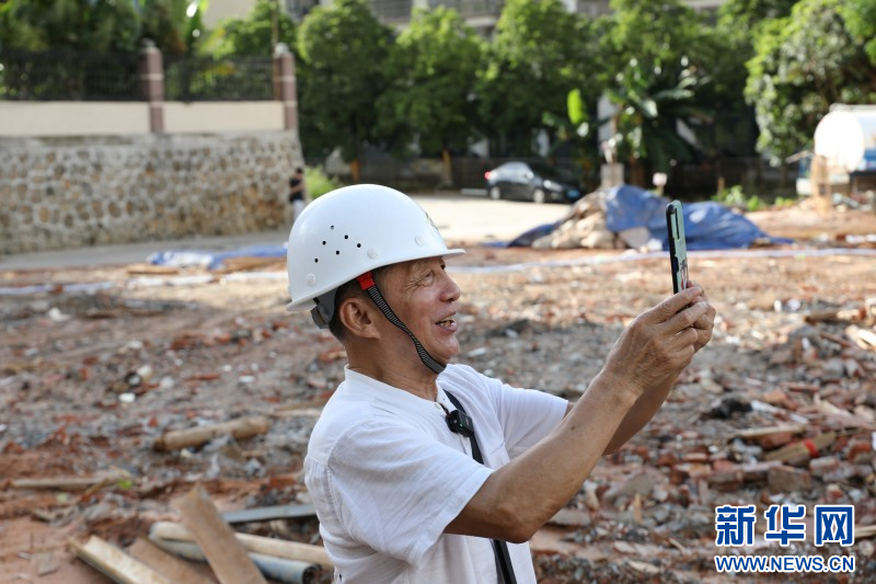 職工代表畢疇久拍攝工地施工情況。新華網發