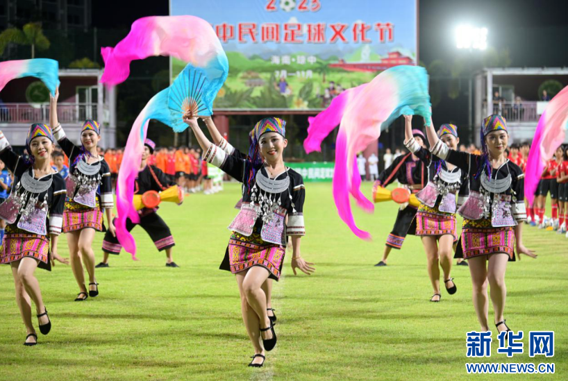 除精彩球賽,2023年瓊中民間足球文化節也在當晚啟動。本次瓊中民間足球文化節從7月至11月間跨度五個月份持續進行。賽場外,瓊中黎族苗族特色美食、傳統民族服飾通過夜市經濟方式,推介給前來觀賽觀眾、旅客,實現足球搭臺,“黎苗文化”唱戲,以賽促旅,將足球與文化、旅游深度融合,助力鄉村振興。