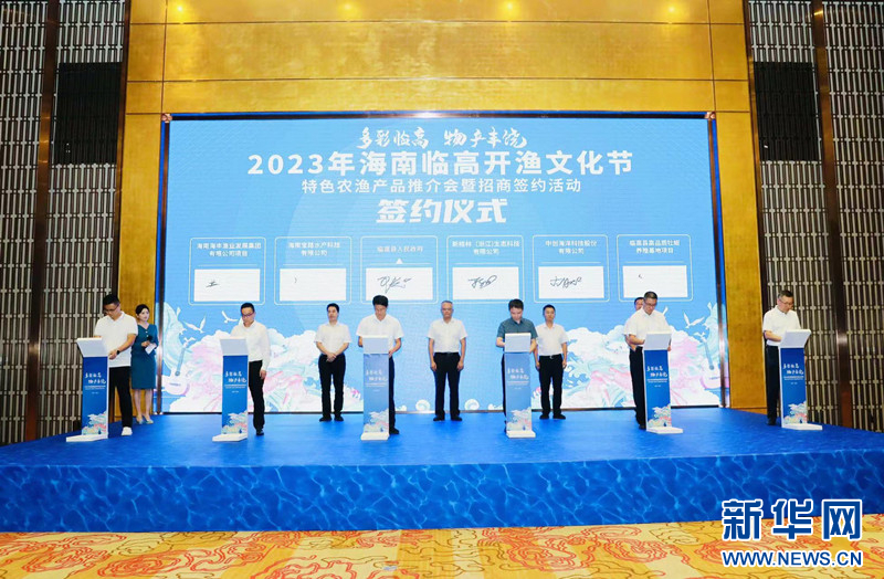 2023年海南臨高開漁文化節特色農漁產品推介會暨招商簽約簽約儀式現場。新華網發