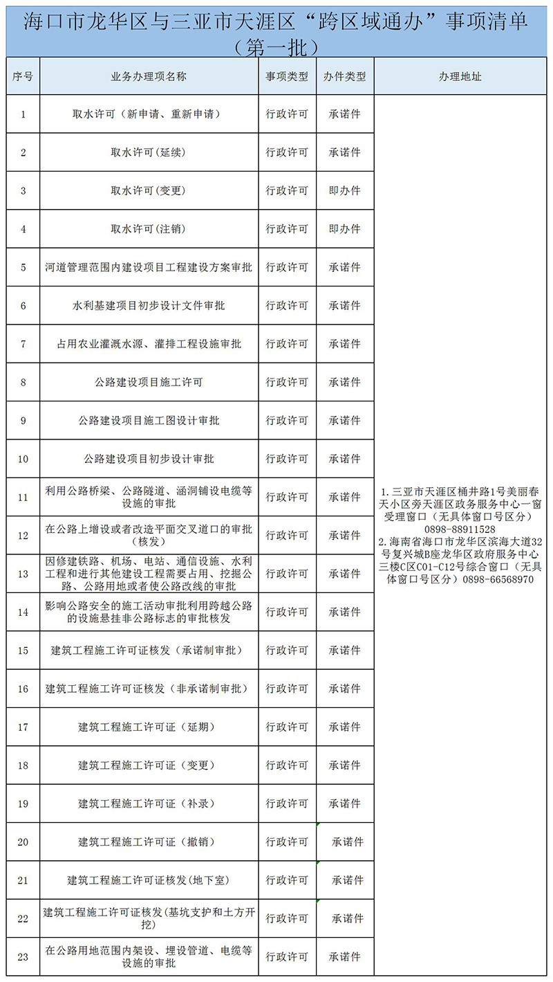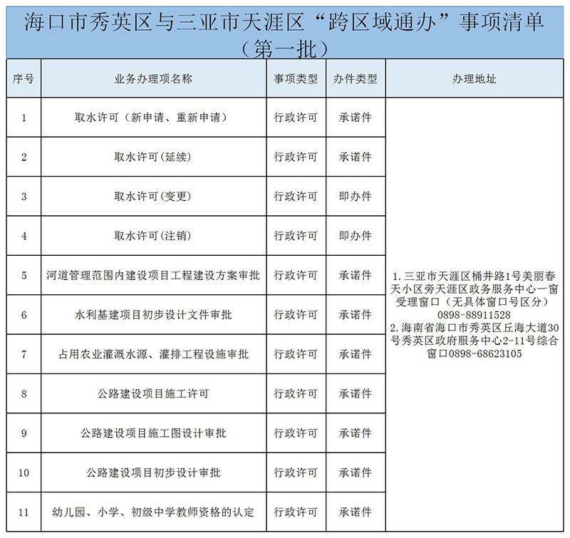 隨著在三亞??趦傻貐f同發展全面深化,群眾對“跨區域通辦”的需求也日益增長,為解決群眾“多地跑”“折返跑”問題,兩地多部門共同梳理研究,形成與龍華區可通辦政務服務事項清單23項,與秀英區可通辦政務服務事項清單11項,通辦事項覆蓋教師資格認定及工程建設項目審批領域。