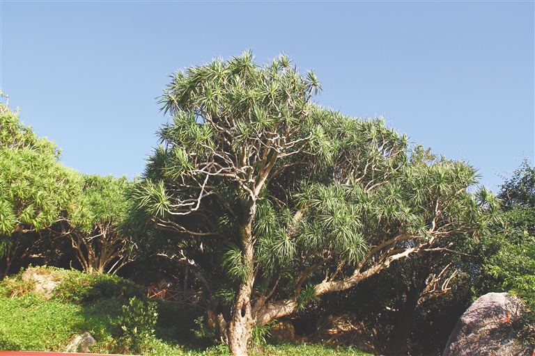 近日,三亞市崖州區大小洞天旅游區的龍血樹古樹群入選全國100個最美古樹群名單。圖為大小洞天旅游區的龍血樹古樹。圖/海南日報記者 王程龍 文/通訊員 王輔志