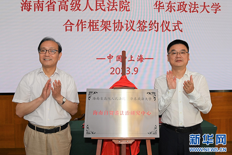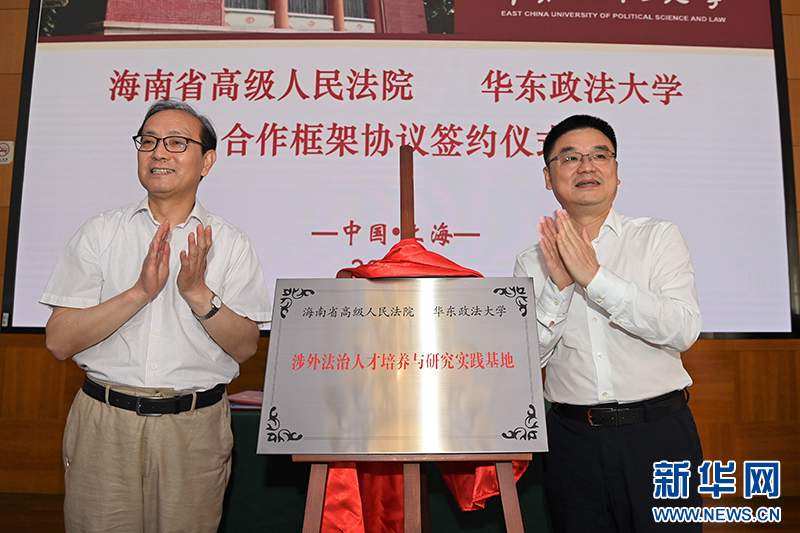 9月18日,海南省高級人民法院與華東政法大學共同簽署涉外法治領域合作框架協議,旨在統籌推進國內法治和涉外法治、推動法學理論研究與審判實踐相融合、共同培養新時代高素質涉外法治人才。