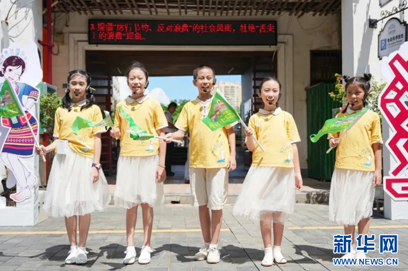 由小導游、街頭藝人等組成的海島風情巡游隊伍在??隍T樓老街亮相,身著國風服的小導游們,不時穿梭在騎樓中聲情并茂、繪聲繪色地向市民游客講述騎樓的故事?!坝鲆娨蝗簝炐阈в?,不僅深入了解騎樓的文化底蘊,也讓我看到了海南的文明底色?!眮碜詮V東湛江的游客鄺建濂說道。