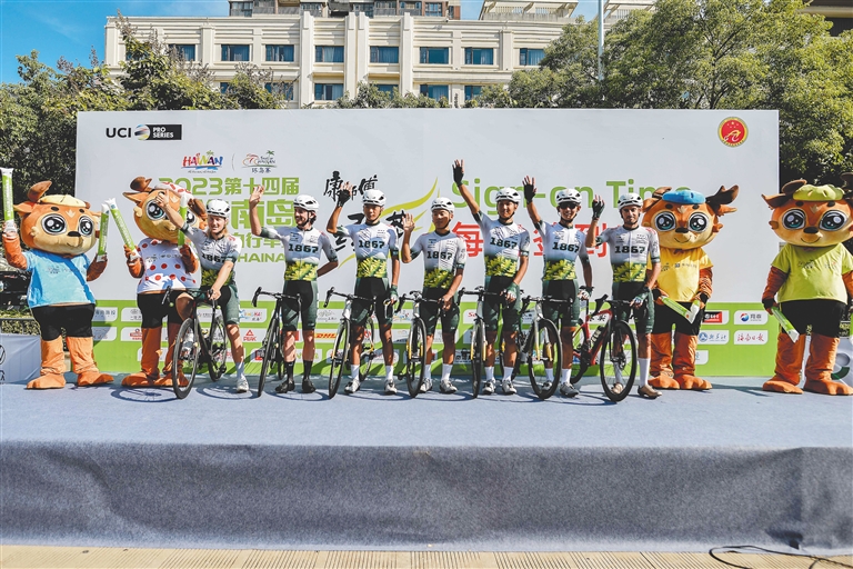 “車隊從今年1月成立后,積極備戰訓練,不斷參加國內各項賽事,以賽代練,磨煉團隊配合度和爆發力?!避囮犠詥挝回撠熑思o洋向記者介紹,2023賽季里,車隊已參加中國公路自行車職業聯賽多個地方站的比賽,以及平潭海洋杯國際自行車公開賽(福建)等多項國內高級別自行車賽事,隊員們配合默契、敢于拼搏,部分隊員取得賽段大中華最佳、車隊團體第三名等多個好成績?!白鳛楸就梁蜄|道主車隊,車隊參賽目標為確保完賽,爭取項目前列排名?!奔o洋表示,車隊還將利用環島賽媒體資源,積極宣傳五指山雨林天路體育旅游資源,展現永不放棄的拼搏精神。