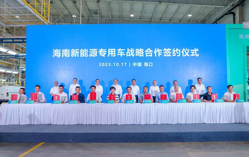 2023年10月17日,海南遠程新能源商用車與省屬企業等戰略合作協議簽署儀式在海南省??谑信e行。簽約儀式上,海南遠程新能源商用車有限公司與省內外20余家知名企業進行戰略合作簽約和訂單簽約,將向海南多家企業分別批量交付遠程星瀚G甲醇重卡、吉利星際純電動城市客車C8E、遠程星享V6E等車型。