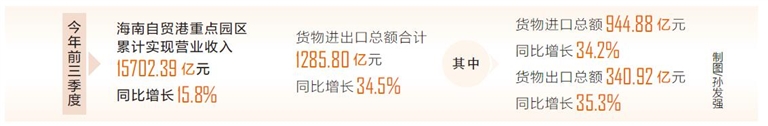省統計局10月30日發布數據顯示,今年以來海南自貿港重點園區主要經濟指標保持穩步增長,發展態勢持續向好。前三季度海南自貿港重點園區累計實現營業收入15702.39億元,同比增長15.8%。
