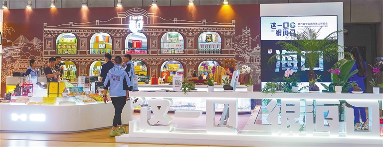 11月5日,參加第六屆中國國際進口博覽會人文交流活動的???,在進博會中國旅游展示專區內開設??谌宋恼桂^,推介??诼糜挝幕统鞘酗L光之美。