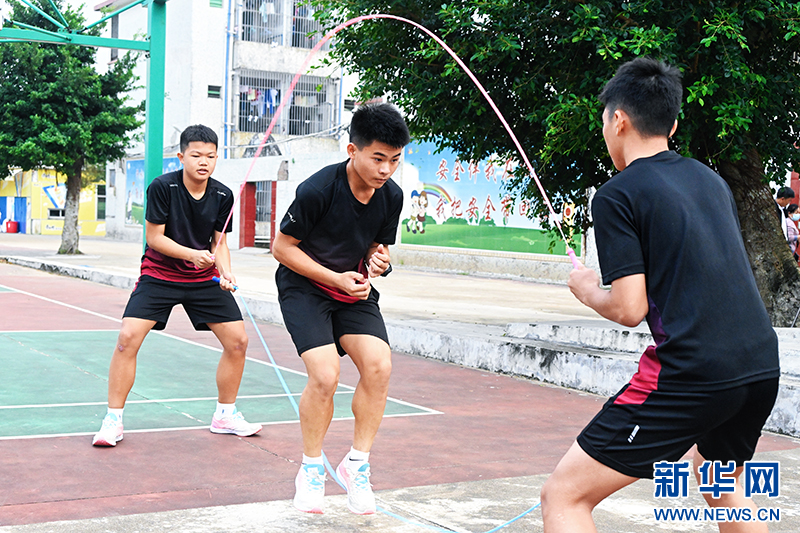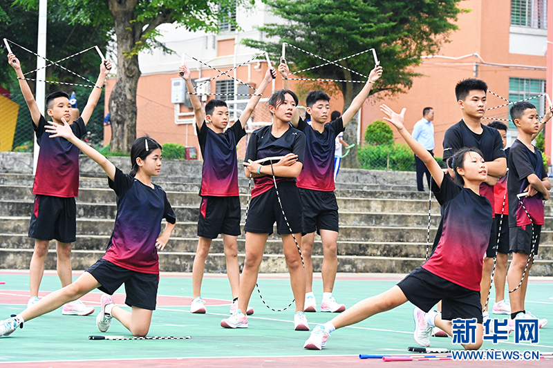 錦山中學跳繩隊的隊員利用課余時間訓練。新華網發