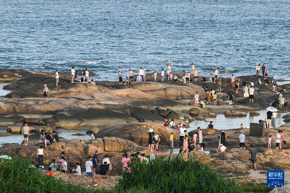 10月4日,游客在海南環島旅游公路文昌段途經的木蘭灣游玩。