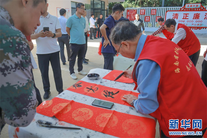 海南省老年書畫研究會和三沙市的老干部志愿者為村民寫對聯、楹聯。海南省農村信用社聯合社工作人員向村民發放金融反詐資料。海南省第二人民醫院老專家和醫護志愿者現場為有問診需求的村民進行義診,開展健康知識宣傳?!拔也粌H免費看了病,還領到了藥,真的太感謝了?!?8歲新豐村村民李照清說道。