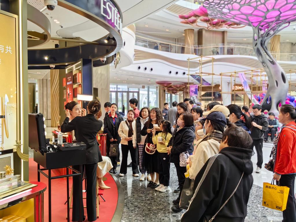 2023年12月24日,??趪H免稅城一家門店在進行產品展示活動。新華社記者 吳茂輝 攝