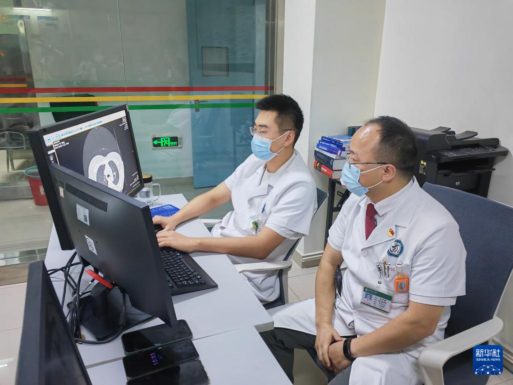 1月11日,萬寧市人民醫院“好醫生”項目引進的醫學影像科主任仝開軍正在指導青年醫生讀片。新華社記者 夏天 攝