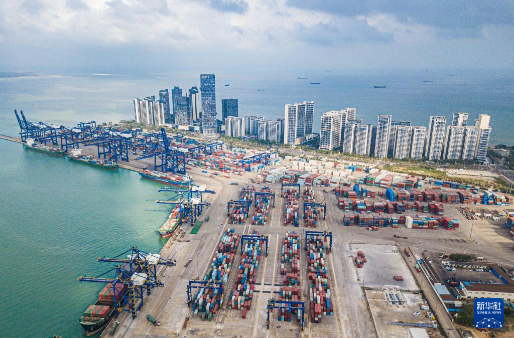 1月1日在海南省洋浦經濟開發區拍攝的海南自貿港集裝箱航運樞紐——洋浦國際集裝箱碼頭(無人機照片)。新華社記者 蒲曉旭 攝