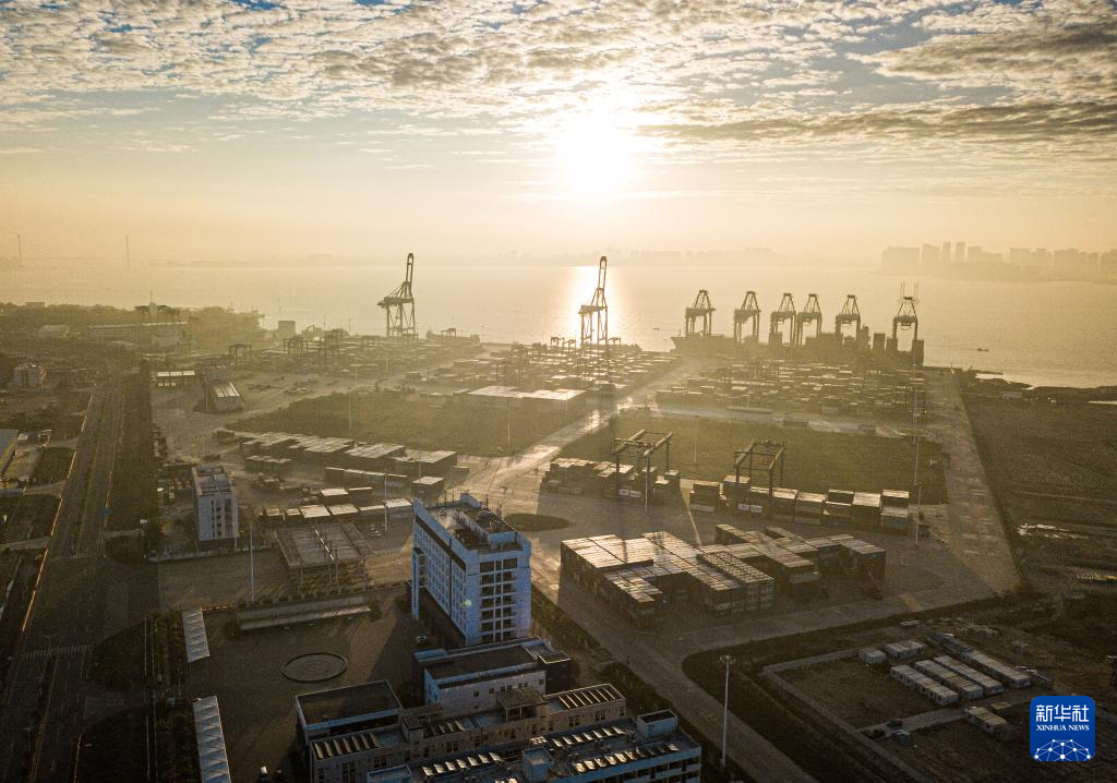 2023年12月29日在海南省洋浦經濟開發區拍攝的洋浦港碼頭(無人機照片)。新華社記者 蒲曉旭 攝