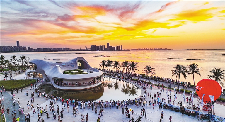 ??跒呈呛?诘摹熬W紅”打卡地,其夕陽美景讓市民游客紛紛拍照留念。海南日報記者 陳元才 攝