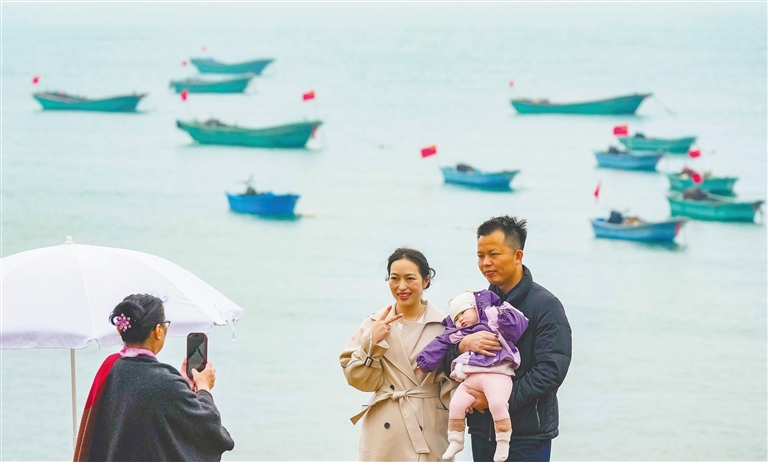 2月10日,在儋州市峨蔓鎮火山海岸省級地質公園,游客在游玩觀光。海南日報記者 陳元才 攝