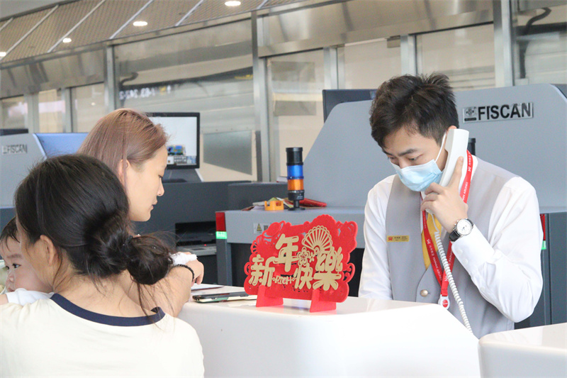 海南航空地服人員為旅客辦理值機手續。新華網發