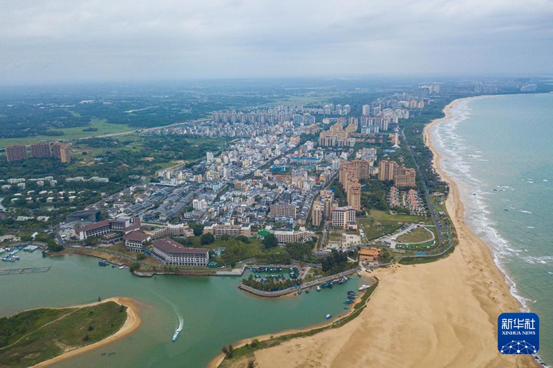 這是在海南環島旅游公路沿線拍攝的萬泉河入??诰吧?月13日攝,無人機照片)。