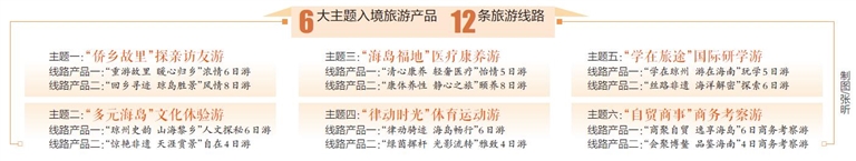 為向更多境外游客推介海南豐富多彩的旅游資源、文化資源、商務資源,海南省旅游和文化廣電體育廳以此次擴大免簽為契機,借勢推出海南六大主題入境旅游產品,邀請世界各地的游客來到海南。