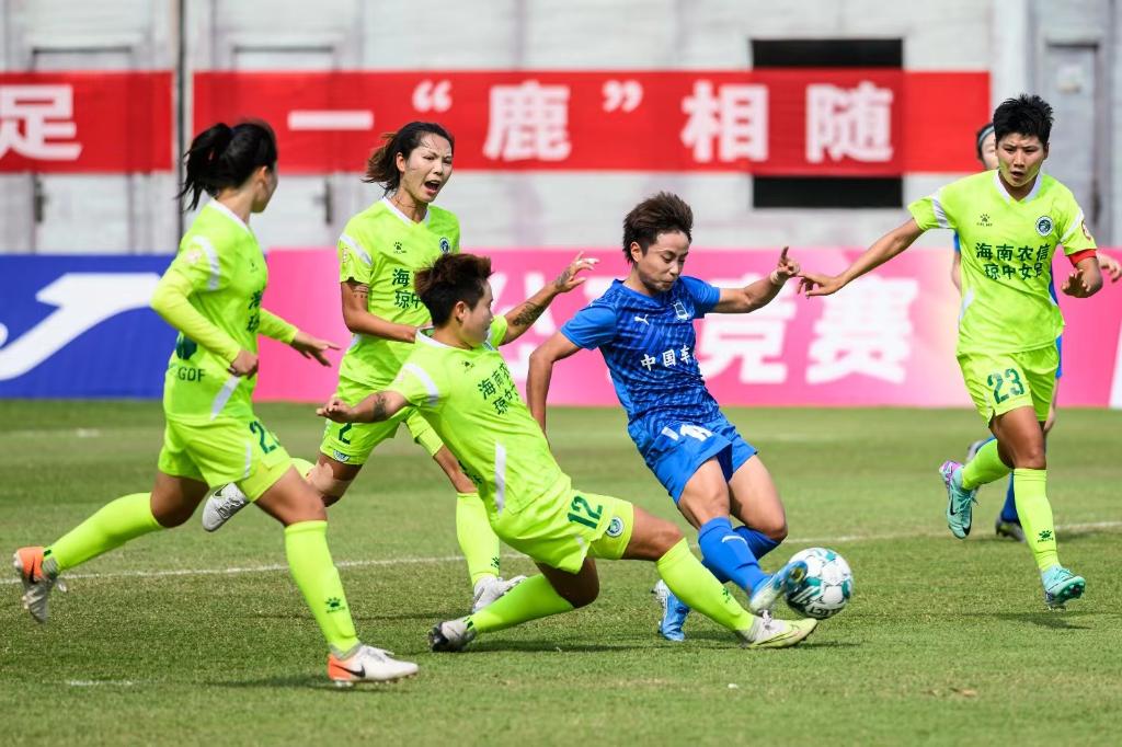 開場后,擁有多名國腳的武漢隊占據場面主動。第26分鐘,武漢隊的張琳艷和隊友連續“撞墻”配合,帶球長驅直入突入禁區,但是她的射門被主隊后衛解圍。而海南隊則依靠反擊尋找機會,但始終難以威脅對方球門。下半場補時階段,宋菲遠射擊中橫梁,海南隊逃過一劫,最終雙方握手言和。