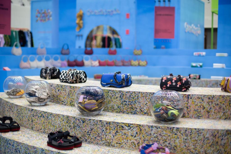 4月12日拍攝的第四屆中國國際消費品博覽會時尚生活消費展區的一處展臺。