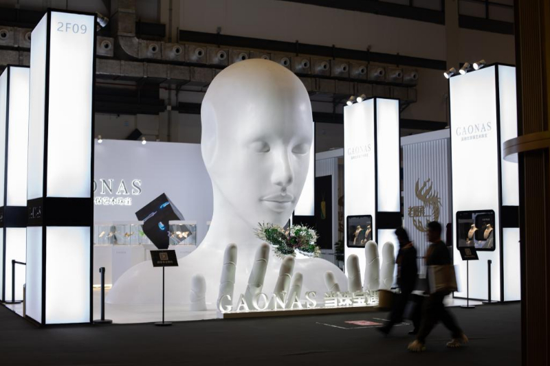 這是第四屆中國國際消費品博覽會珠寶展區的一處展臺(4月12日攝)。