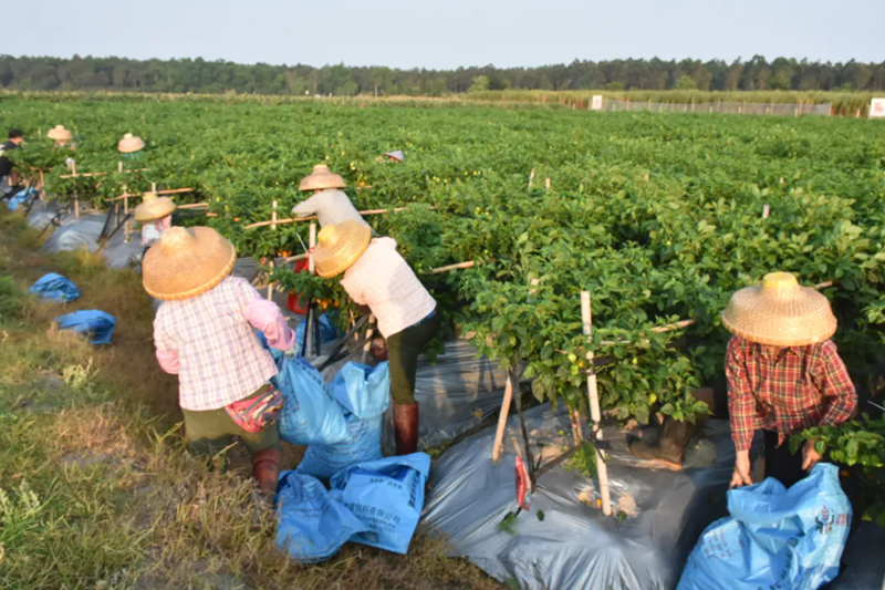 黃燈籠辣椒是一種具有獨特風味的辣椒品種,深受消費者喜愛。其辣度高、色澤鮮艷,具有豐富的營養價值。隨著黃燈籠椒采摘季的到來,每天都有50至60人在基地里采摘辣椒,每人每天有140元的收入,一天平均可采摘差不多13000到14000斤,廠家每天中午、晚上分兩次來基地收購辣椒?;貎壤苯凡烧磕陝撛焐鐣б孢_到60萬元。