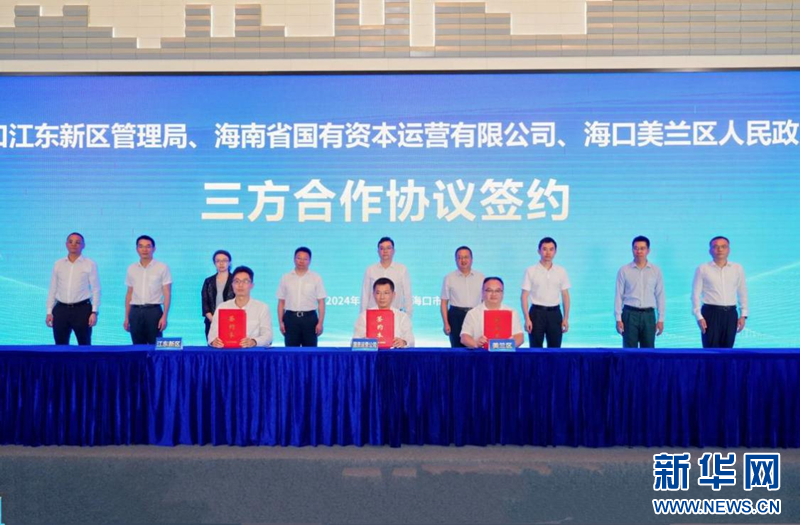 海南國資運營公司、江東新區管理局、美蘭區政府簽約現場。新華網發