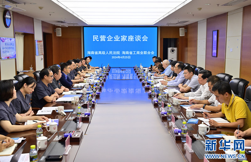 4月25日下午,海南省高級人民法院與海南省工商聯以“加強司法保障,優化民營經濟發展法治環境”為主題召開民營企業家座談會,聽取民營企業家代表對司法服務保障民營經濟發展的意見建議,提升司法服務保障水平,促推海南民營經濟高質量發展。