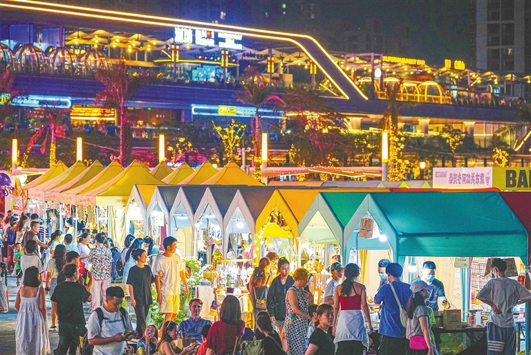 五月四日晚,??跒逞鼐€,市民游客在市集上購物。海南日報記者 王程龍 攝