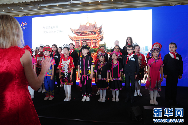 當地時間5月6日晚,五指山黎苗童聲合唱團與巴黎寶麗聲童聲合唱團、巴黎風雅亞歐音樂交流協會、巴黎“和·韻”中法合唱團同臺獻藝。新華網發