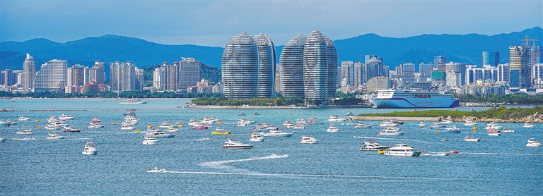 五月十八日,在三亞灣海域,眾多游客乘坐游艇出海。海南日報記者 王程龍 攝