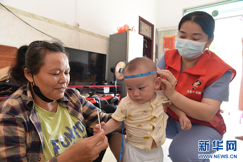 “小屯妹”志愿者龐秀菱給孩子測量頭圍。新華網發