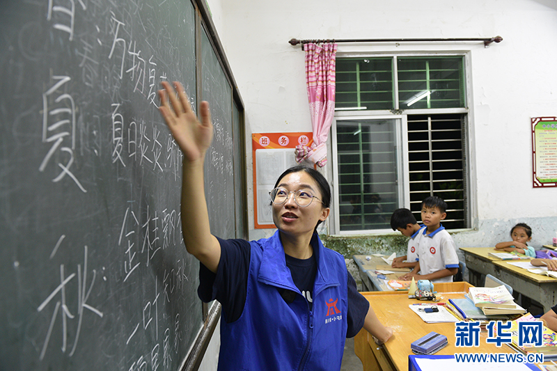 “小屯妹”志愿者王雪娥在給孩子們分享成語游戲。新華網發