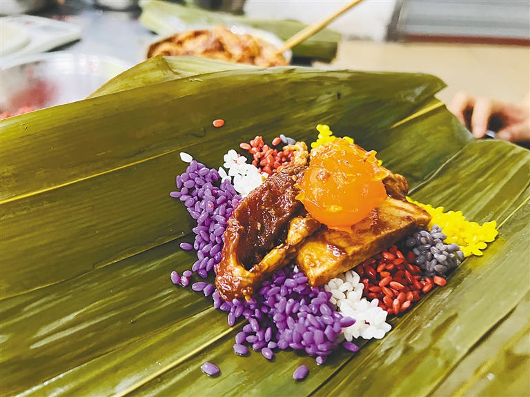在五色飯基礎上改良創新的五色粽。海南日報記者 陳子儀 攝
