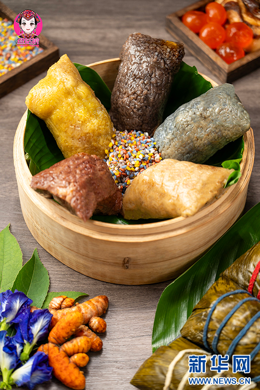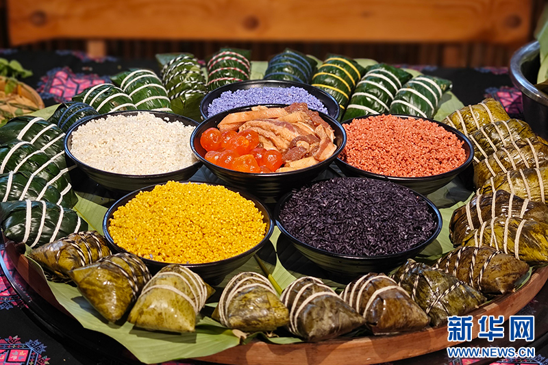 苗家五彩船型粽的準備材料。新華網發(林師鍶 攝)
