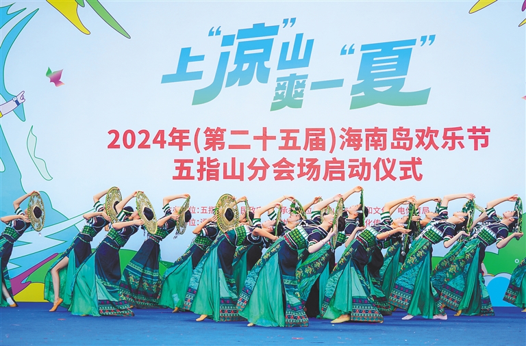 六月十五日上午,二〇二四年(第二十五屆)海南島歡樂節五指山分會場活動在該市三月三廣場開幕。付金城 攝