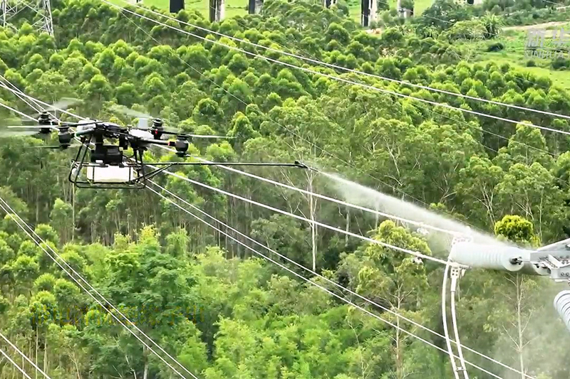 據了解,本次作業利用無人機搭載W330絕緣子水清洗裝置,可以對絕緣子進行快速帶電沖洗。同時,無人機還配備了35升大容量水箱,功率達1500瓦以上,水流量每分鐘穩定在10升以上,噴射距離超過10米,極大解決了傳統人工清污方式成本高昂、效率低下、安全風險大等諸多問題。