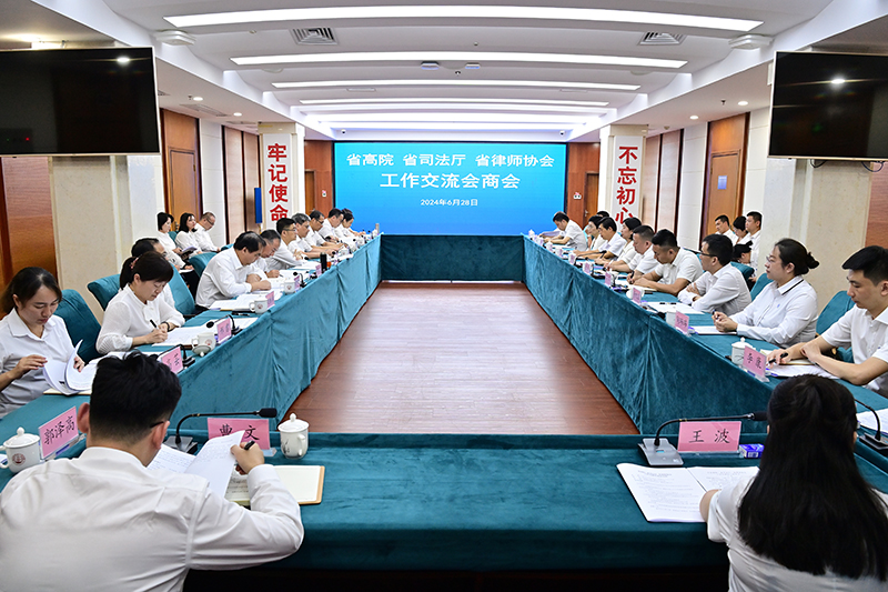 6月28日下午,海南省高級人民法院、省司法廳、省律師協會召開工作交流會商會,凝聚法治共識,深化良性互動,共同努力構建相互理解、相互尊重、平等交流、合作共贏的司法與法律服務協作新格局,推動司法審判和法律服務水平“雙提升”,為推進海南自貿港建設和高質量發展提供更加有力的法治保障。