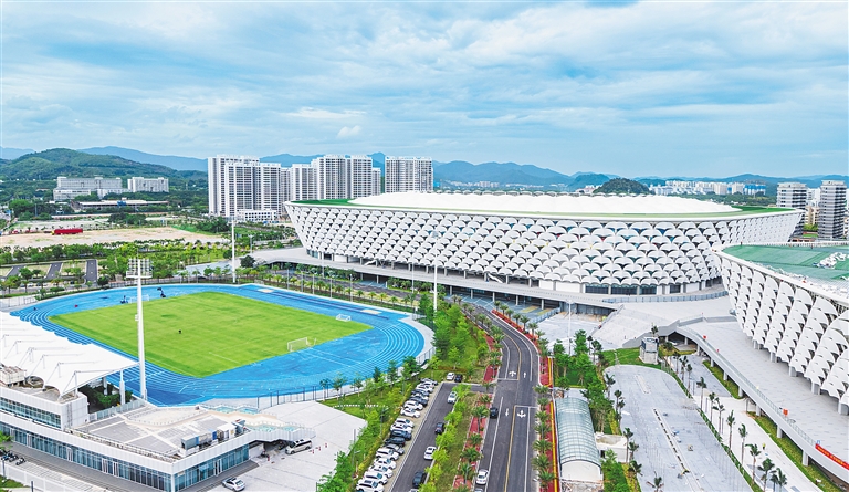 近日,航拍三亞國際體育產業園。隨著第十二屆全國少數民族傳統體育運動會迎來100天倒計時,三亞正加快運動會場館配套設施完善和城市的運動會氛圍營造,熱情迎接盛會到來。 馬一鳴 攝