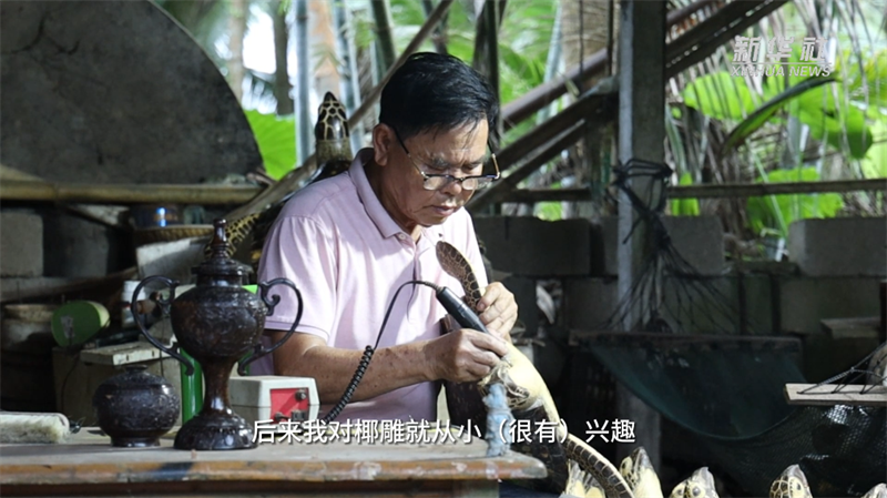 符史瓊是東郊鎮著名的椰雕匠人,也是海南省級非物質文化遺產代表性傳承人,從事椰雕工藝50余年,對椰雕藝術有著近乎癡迷的熱愛。