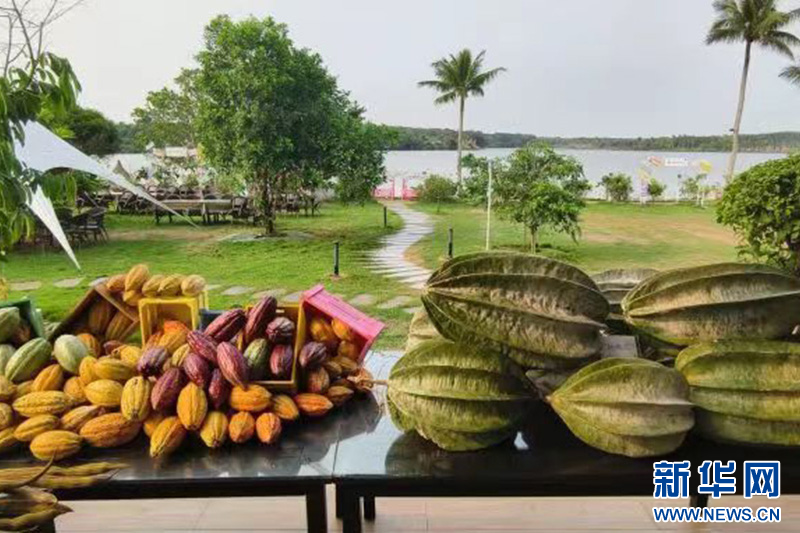 世界熱帶水果之窗內的熱帶水果展示。新華網發